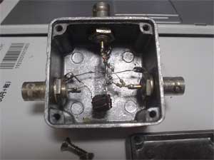 アンテナアラナイザーのPLLの信号を取り出せる様に出力端を付けた。スキャンDDSの信号は出力端が有る。これを合成(ー6dBーコンパイナー)