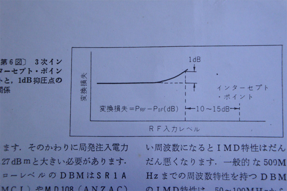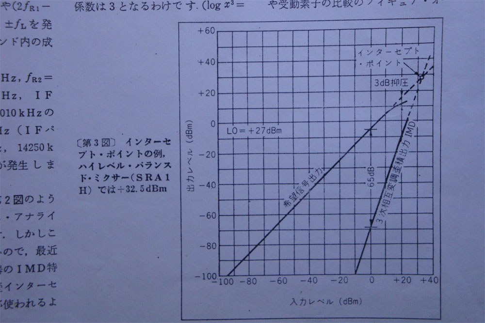 RFampやMixerの特性で直線領域以上ではひずみを発生しやすい、強い入力信号でIPポイントを