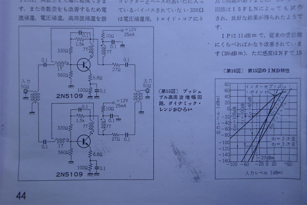 −23.7dBm(14mV,,S9+43dB)以下の入力信号でIMDは雑音レベル以下になる