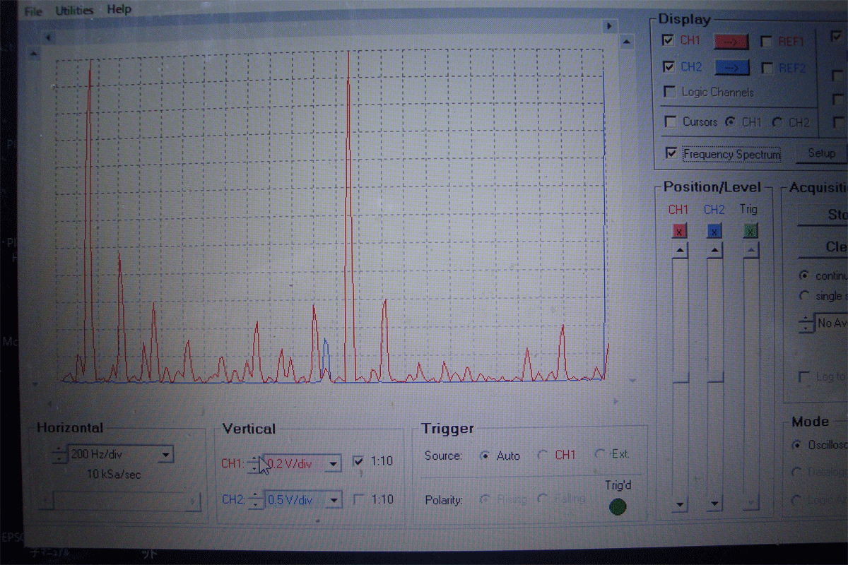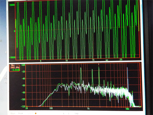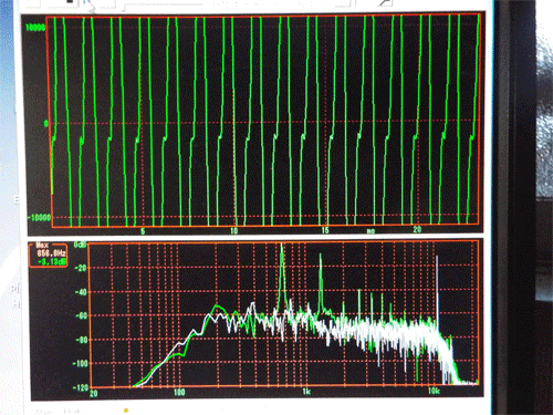 2波合成になる。が手持ちのスペアナアダプターは50KHzの分解能が限界、手を変えないと見る事が出来ない
