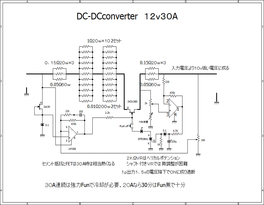 30Aの電流を流すことは無い。電圧は可変にポテンションの小型のVRに変えるマイナスドライバー