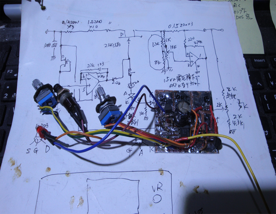 ヘリカルポテンション2kΩに替えアース側を10kΩの半固定で7kに設定、