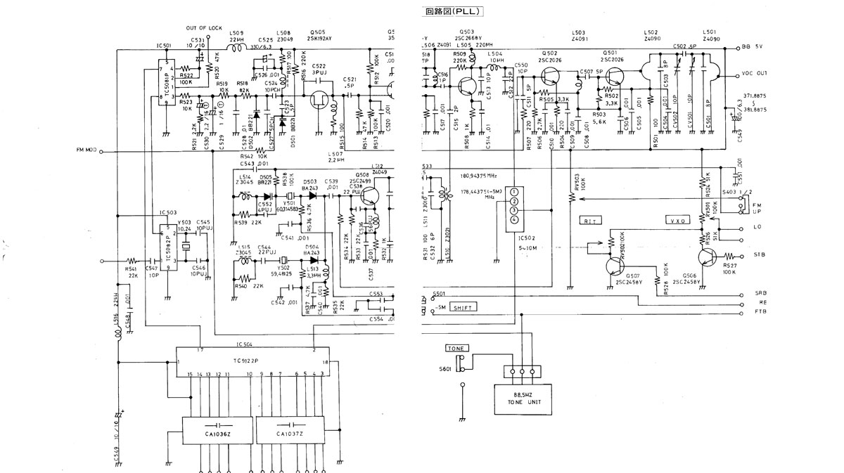 PLL回路、371.8875〜381.8875MHzを発信させてIF58.1125MHzの1stIFを通す。基準の10.24を1/2048分周、5Kstepに