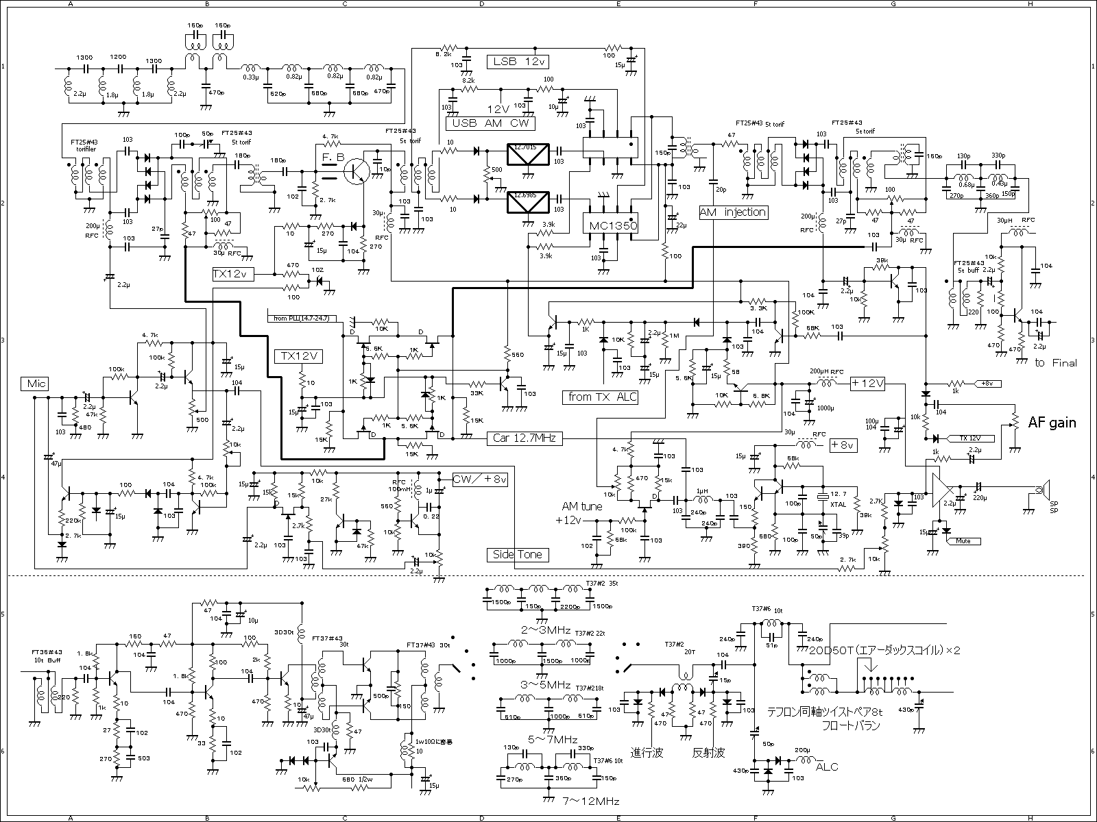 簡潔な回路、RF無しでもN。Fはすこぶる良い。RXのBPFはきれいな台形,