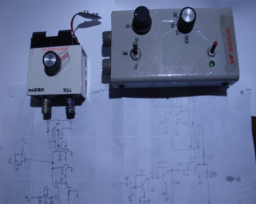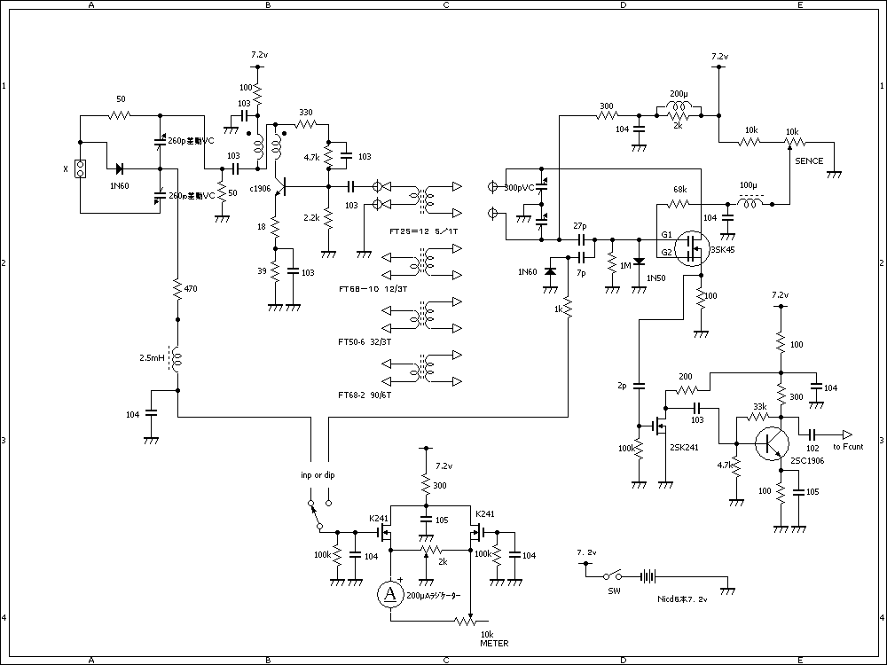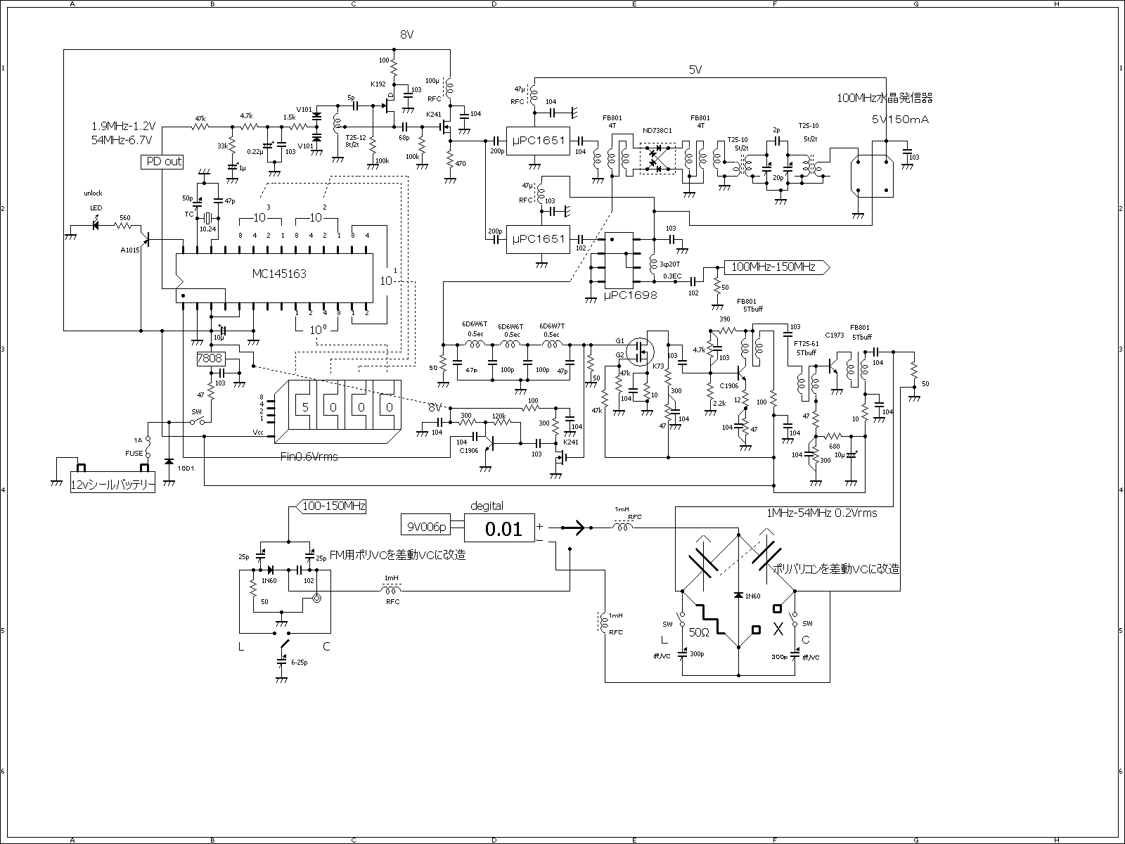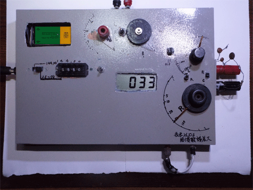 デリカのパクリ、100MHzのOSCと100〜150MHzのPLLをMixさせ 1〜50MHzの可変OSCを使ってR+jXを測定、計測結果は直列共振これを並列 共振に変換してコイル、コンデンサの値を計算。もう1台は送信機とアンテナの間に入れてSWR計の様に使うR±jXを常時表示の2題