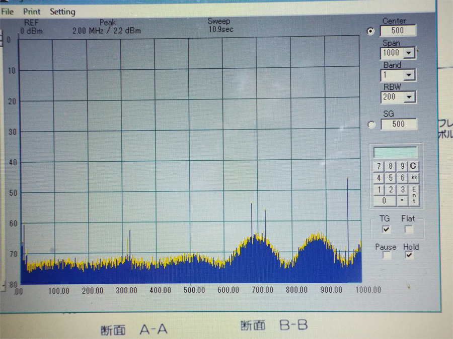 アッテネーターの伝送線路の特性は600MHzはで伸びた。430MHz帯まで十分