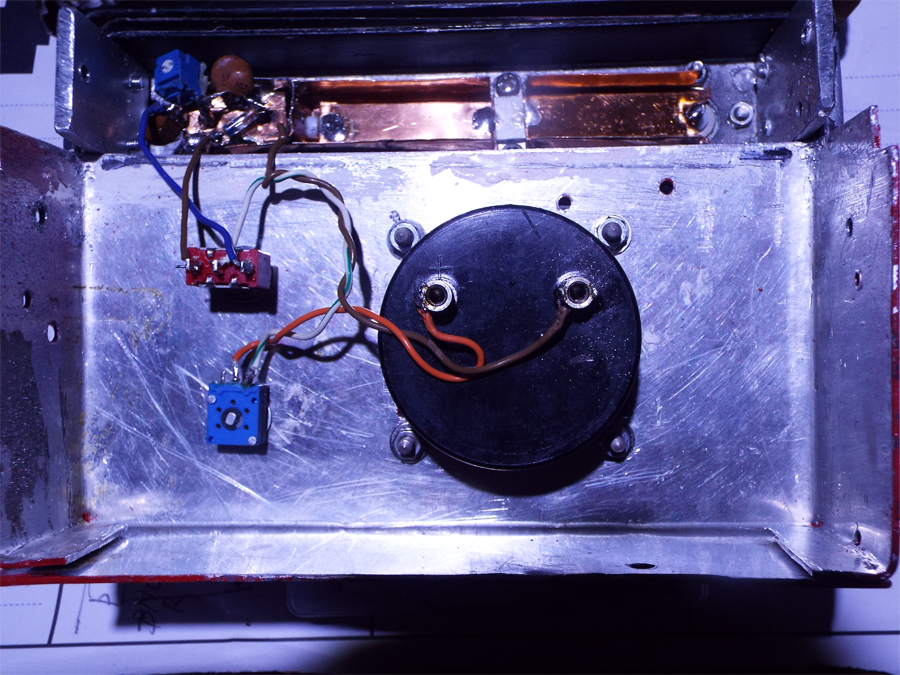 アッテネーターの放熱にLEDの光輝のライトのヒートシンクを流用する。5w入力でフルスケールに成るので25wは不用
