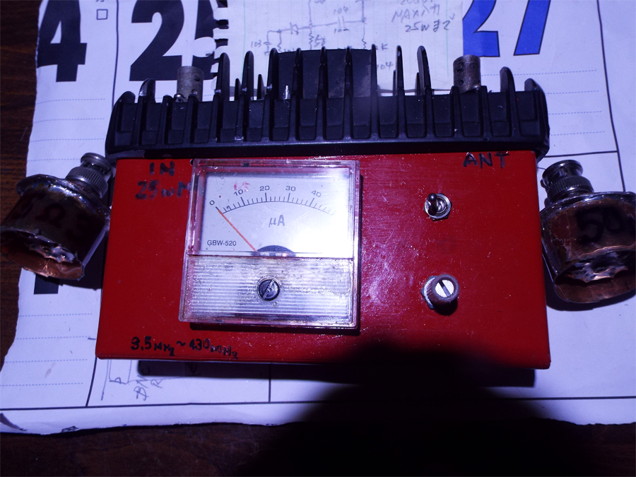 しかし430MHz帯ではブリッジに迷結合が有るのか50Ωで針は振れてしまう。ウーン残念だが致し方無し