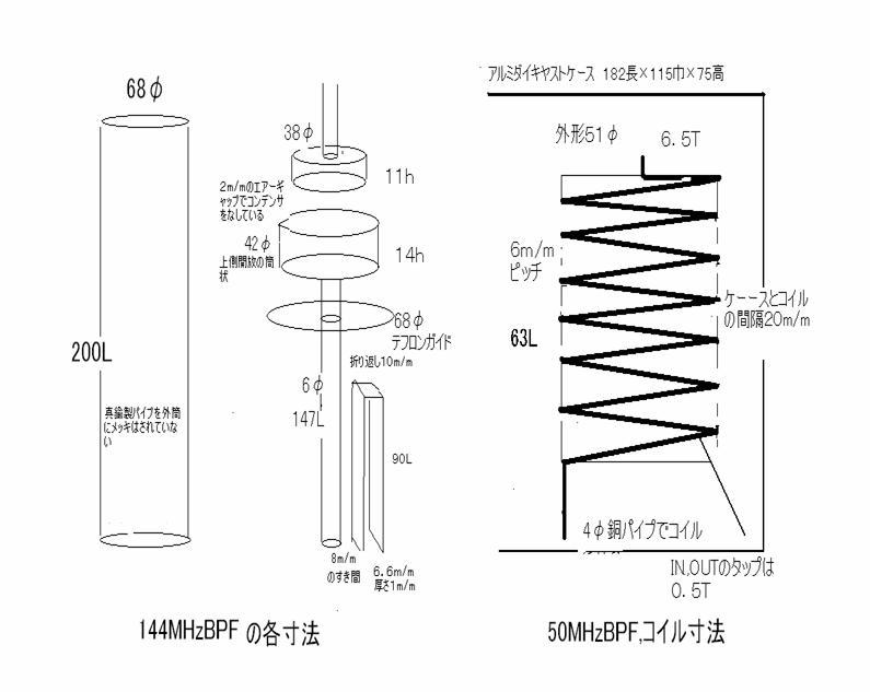 アンテナとトランシーバーの間に入れられるBPF(6mBANDはヘリカル共振器、2mBANDは同軸共振器,)