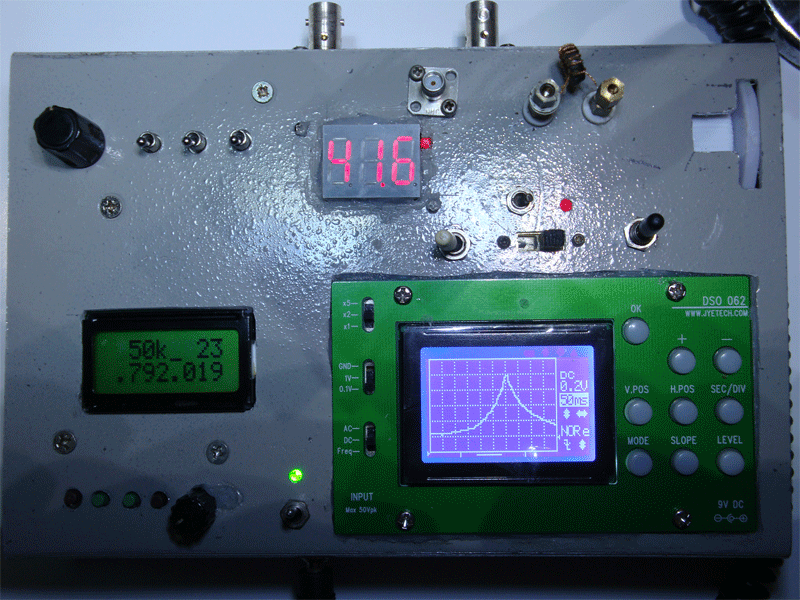 2)コイルのQメータに使う。上側面のGenはつないでコイルの端子に未知のLを繋ぎCを可変ピークを探す、ATTのVRで