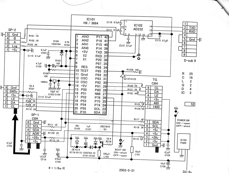 回路図は有るが、チップ部品にフラットパッケージのICが半田付けされて、壊れたら捨てるしかない