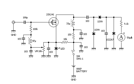 VCで送信周波数に同調させたら指針が最大に振れる。VCを回す時、Body Efectが出る。更に使いやすく成る様にステップATTを入れる。