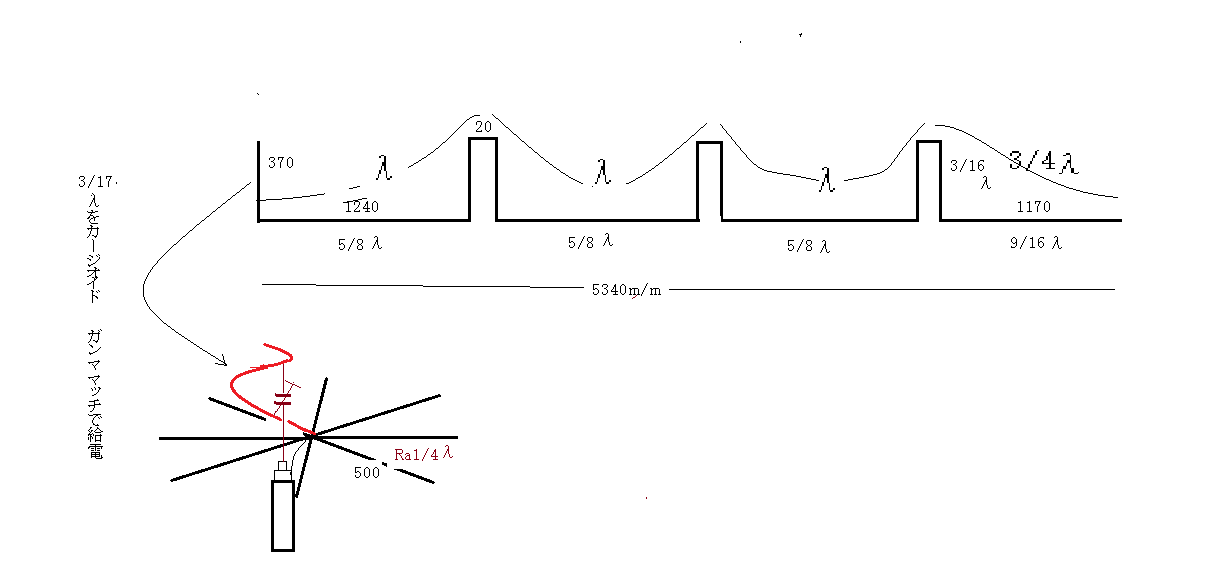 並列共振の様相を呈しているので、1/2のモービルナンテナに並列共振回路の先にエレメントを付けた物が有る、コイルに