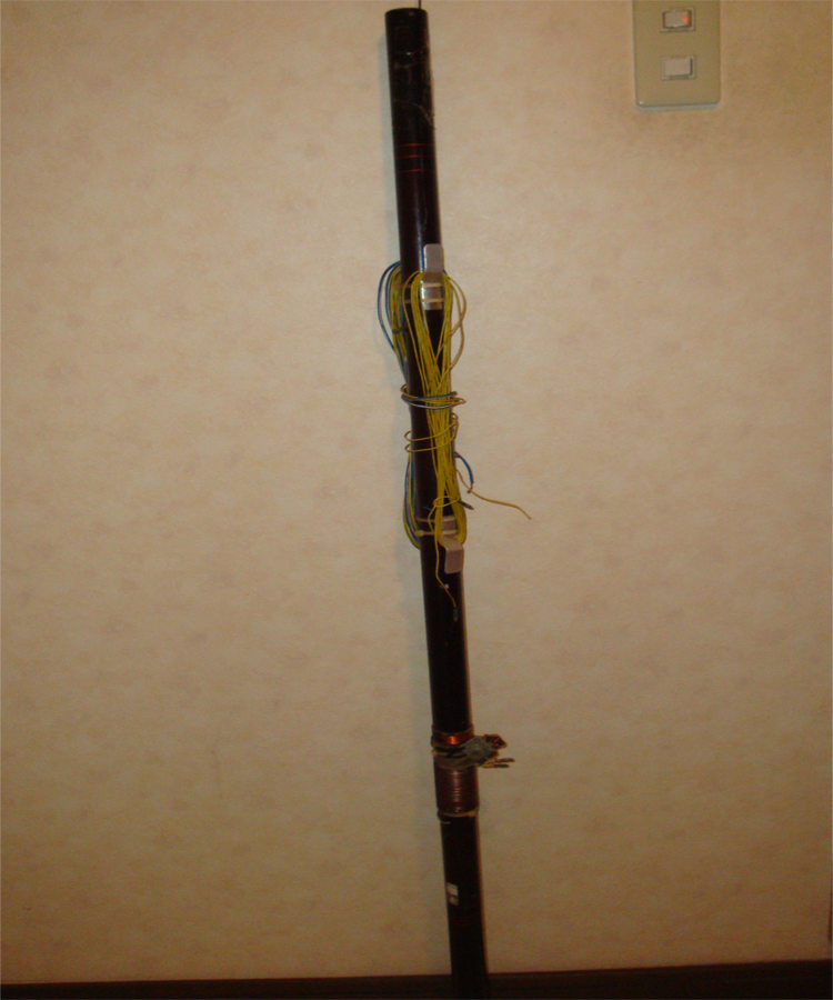 しまうので分割させる。この短縮アンテナはアルミや鉄のポールに先に上げよと記事に書かれている。アンテナ自体が