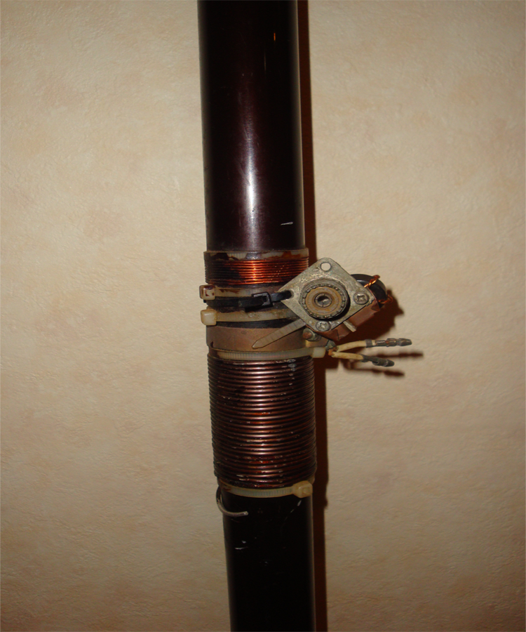 タップを取って給電。これは反対にエレメントを付けた状態,タワーからの放射の方が多いかも、移動にグラスポールを