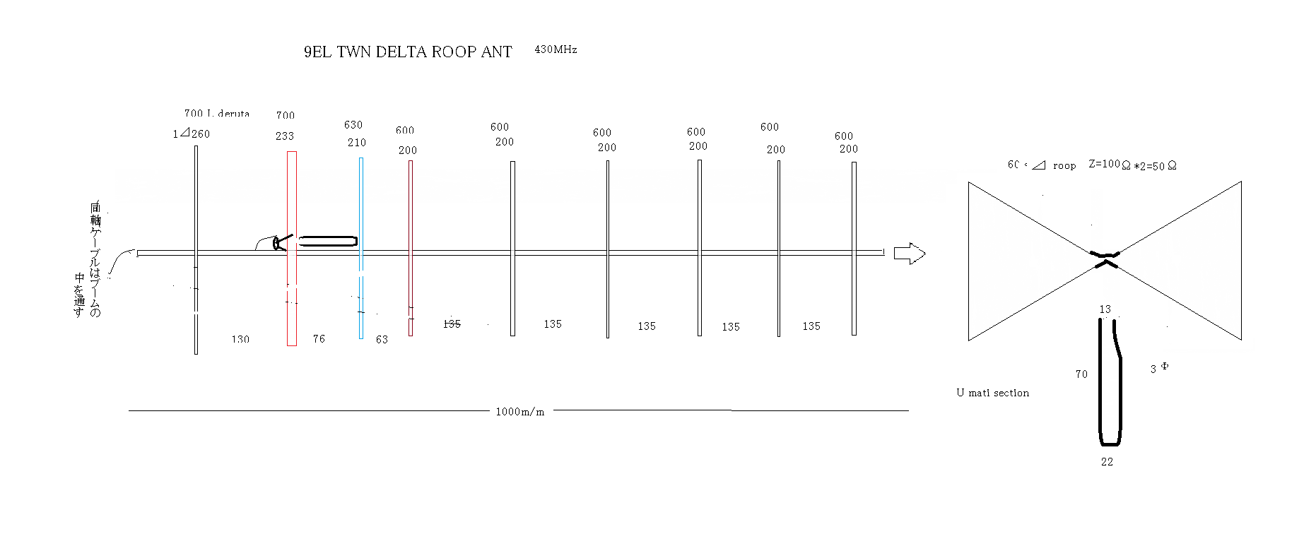 430MHz用9elデルタループANT