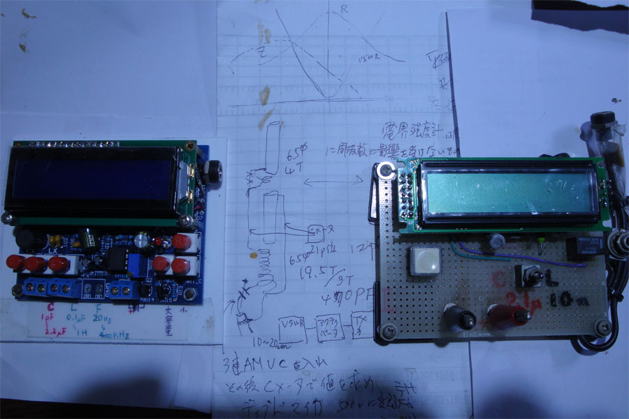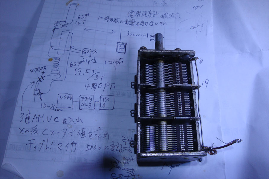 3連VCを並列にしてSWR計が下がるまでVCを調整、できたらデジタルCメーターで読み取り、