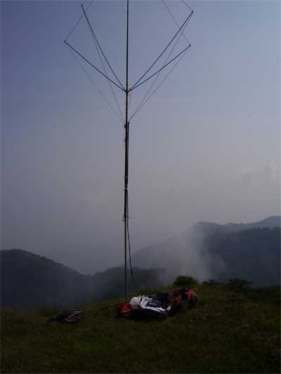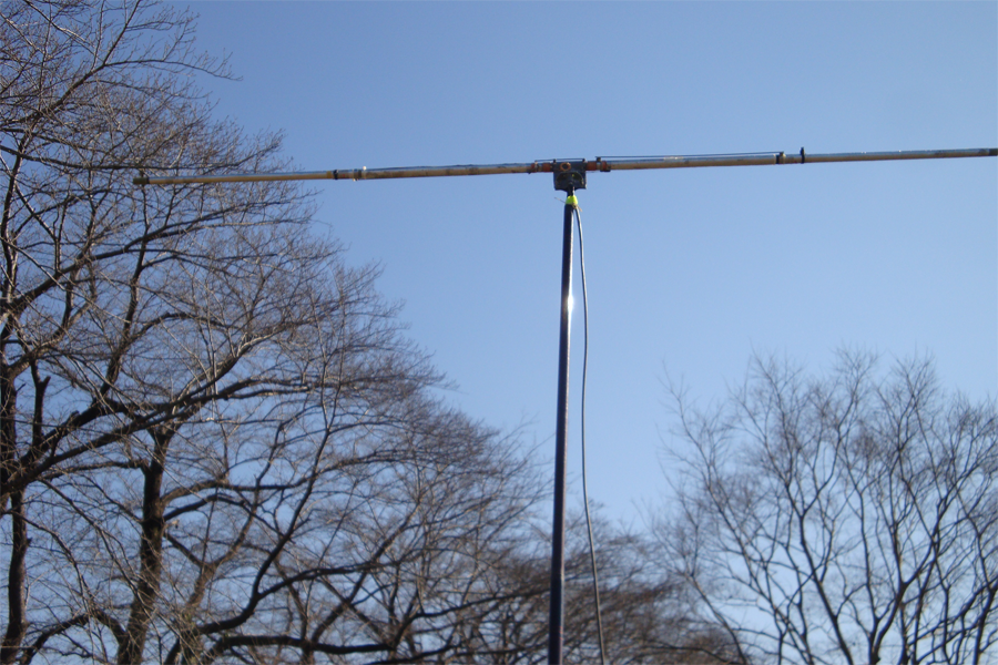 軽量に出来た。塔が岳で運用、指向性は十分有りマストのベースパイプを地べたに差し込んで自立する。