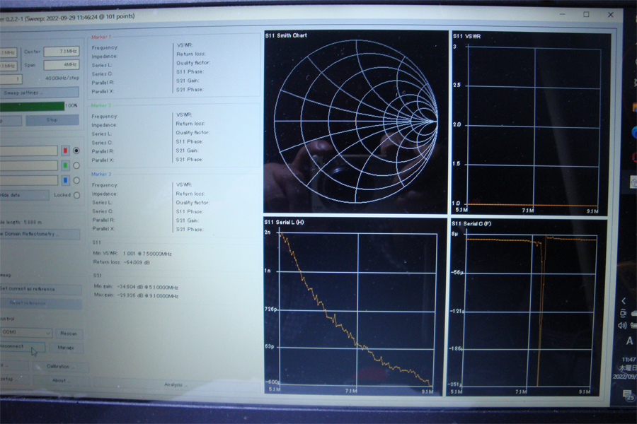 nanoVNAをPCで表示、SWRが変?スミスチャートで50Ω手前