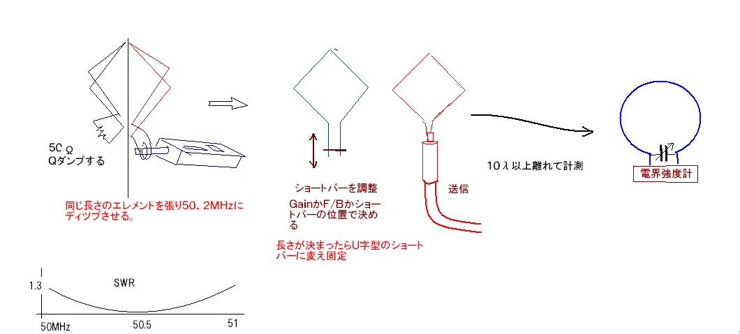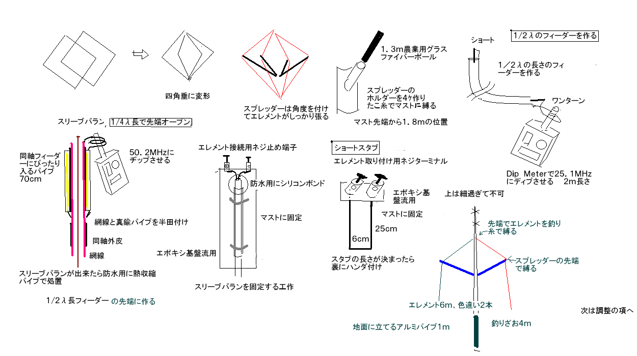 6mband用5ASpANT(クワッドアンテナを5Aエリアのハムがひし形の錘に変形させた)
