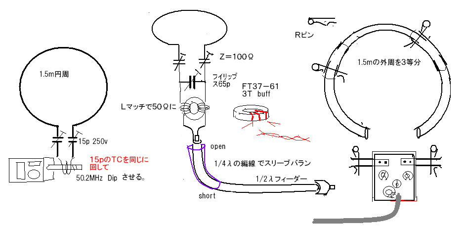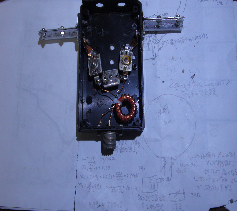ふんでこの大きさにする。250PFのタイトバリコンをループの両端に接続、等量を可変させながら