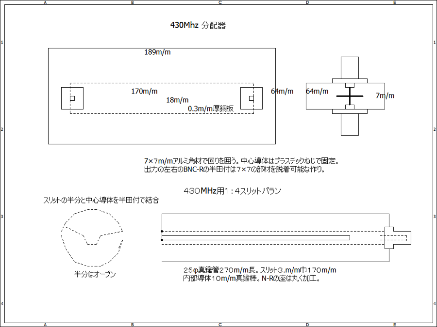 430MHz用分配器、1:4スリーブバラン。同軸バランの3つ