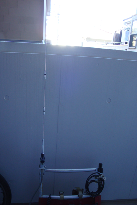 使うので、ステーとラジアル兼用で何本か銅線は必要だ、フィダーと上に上げたアンテナの間