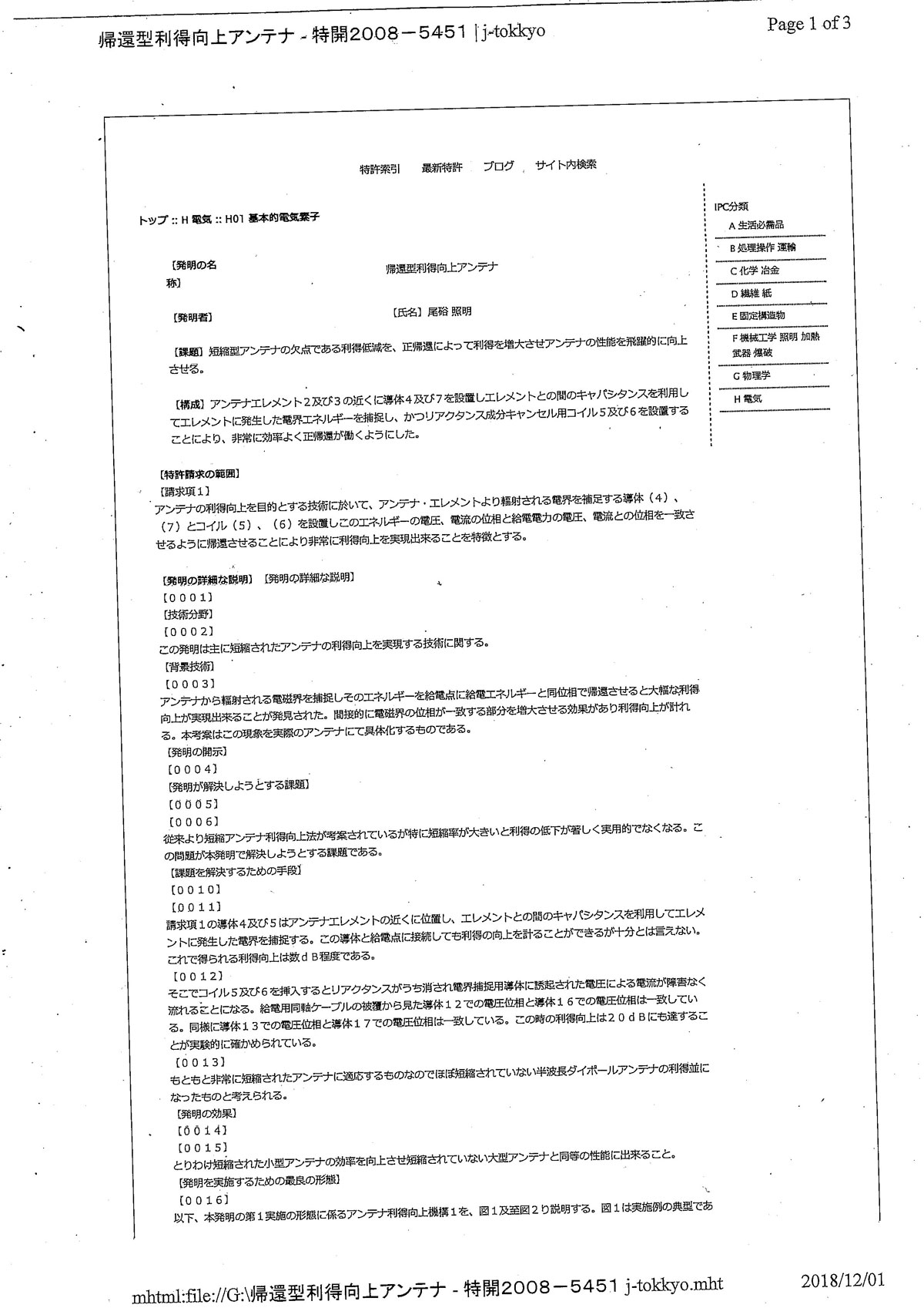 EHアンテナに類似した特許アンテナをWEBで見つける
