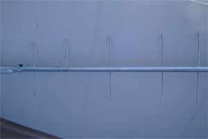 網線からも流れるが少しでも変位電流が流れる様に4本のビニール線を垂らす。マストが金属なら無。(