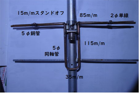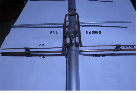 今は無いVHF用TVアンテナを流用してマストエレメントホルダーとエレメント10cmを残して切断