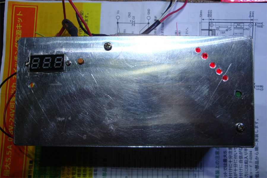 こんなスタイルにしました。電池自体の充電状態のチェック、出力の電圧計、SWを押した時だけ表示