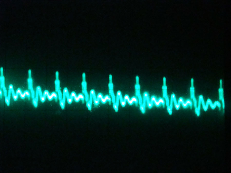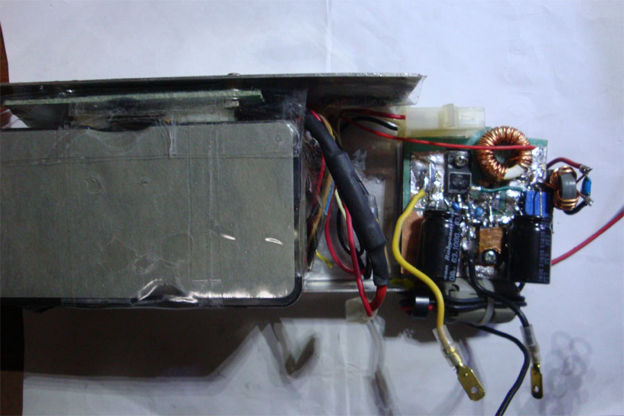 直流電源のわりにはノイズが出ている、フイルターのコイル3段入れたが効果無し、スイチング素子の周波数が低い為か。