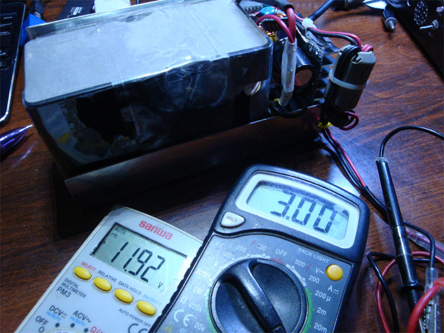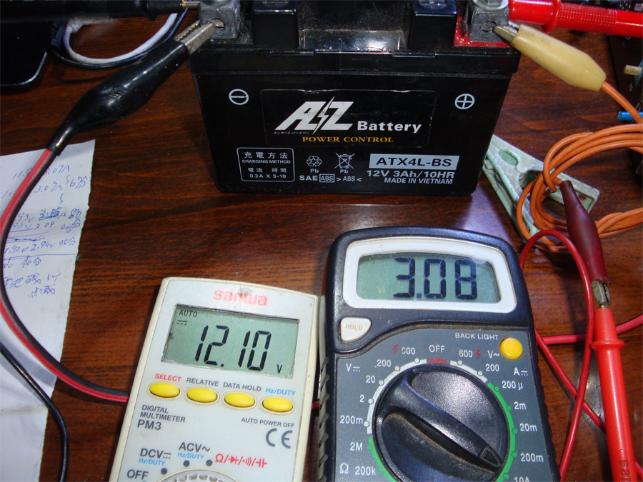 12.10v(満充電)3.06Aこれが50分すると10.97v1.88Aと限界まで放電