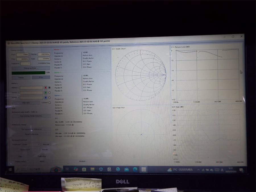PCで大きく見る為のtinySA App ソフトをダウンロードして表示させて見た。nanoVNAと同じS11、S12が計測できる