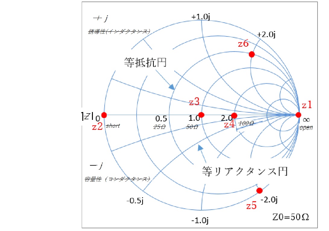スミスチャートのみの表示でスッキリ。50Ωで±jX=ゼロの表示。