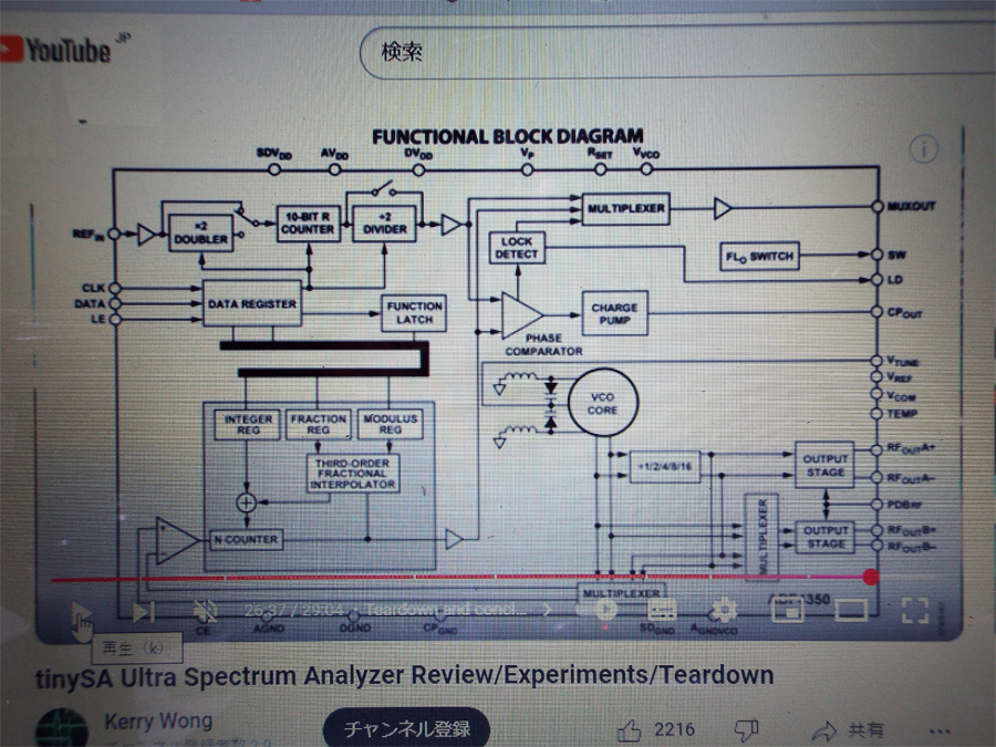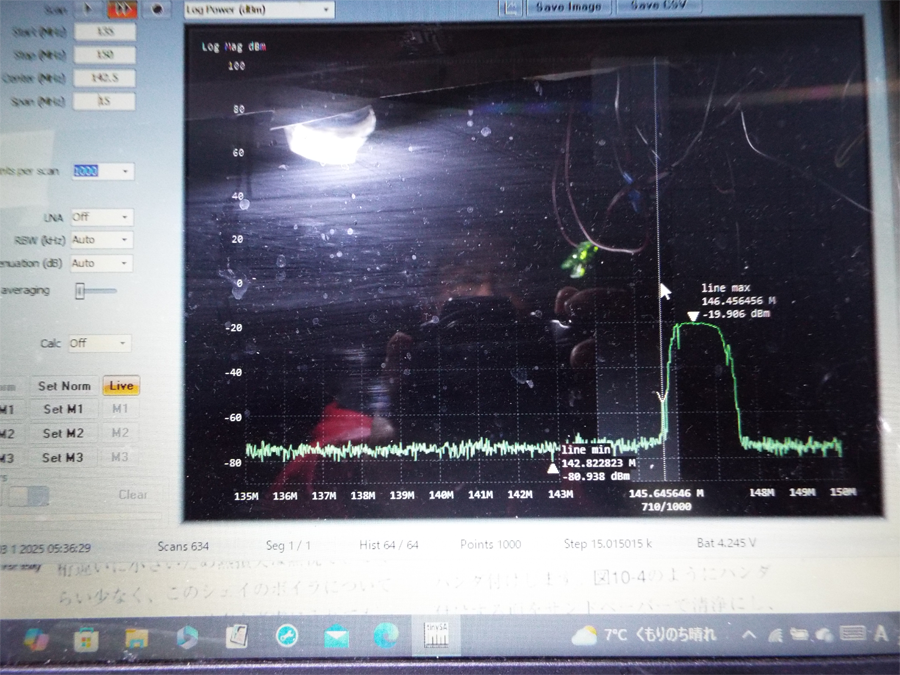 このスペアナは分解能が200Hzと価格にしては大変な能力、ただしスキャンにとても時間かかるが