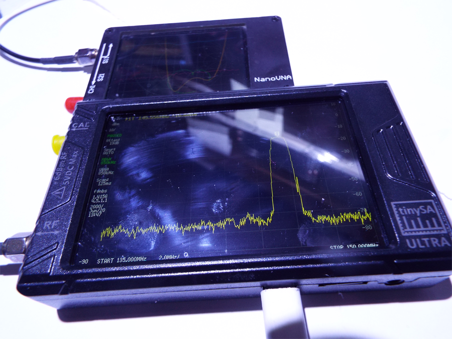 nanovnaのスイパー信号を測定物に通過させた信号をスペア ナtainySA ULTRで計測表示、上手く行った