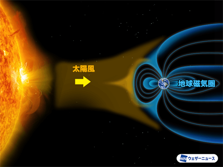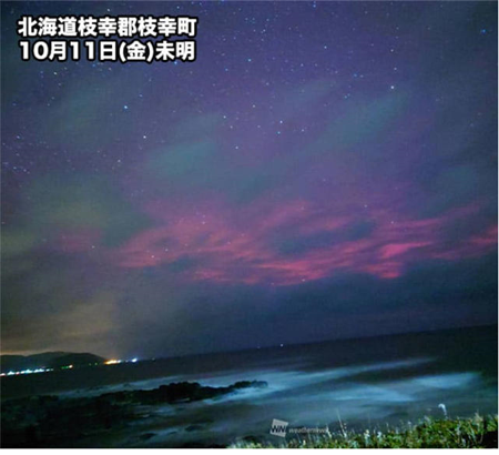 太陽風が地球の磁気を乱すと磁気嵐、電離層を乱す。 初めて北海道にオウロラが出現