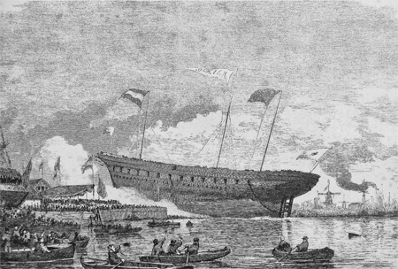 1866年横浜に到着、木造で外壁を銅張りの2600tのフリゲート艦、2気筒の蒸気機関、26門の大砲