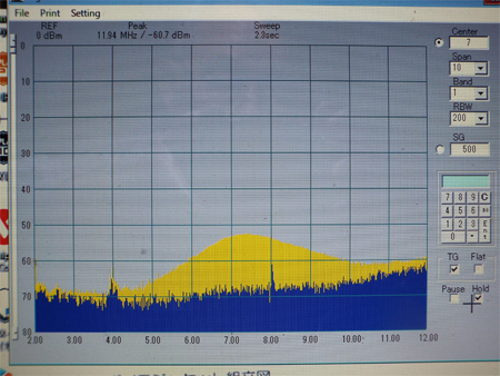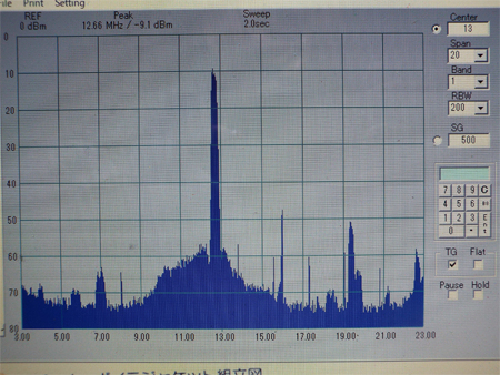 終段のスプリアス特性、2倍の14MHzがかなり強く出ている。