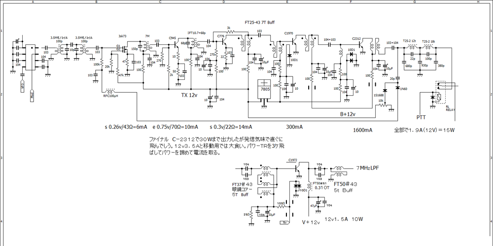 計測すると発振してパワーTRが飛んでしまうを繰り返し回路変更、増幅度を下げる。これで何とか完成。