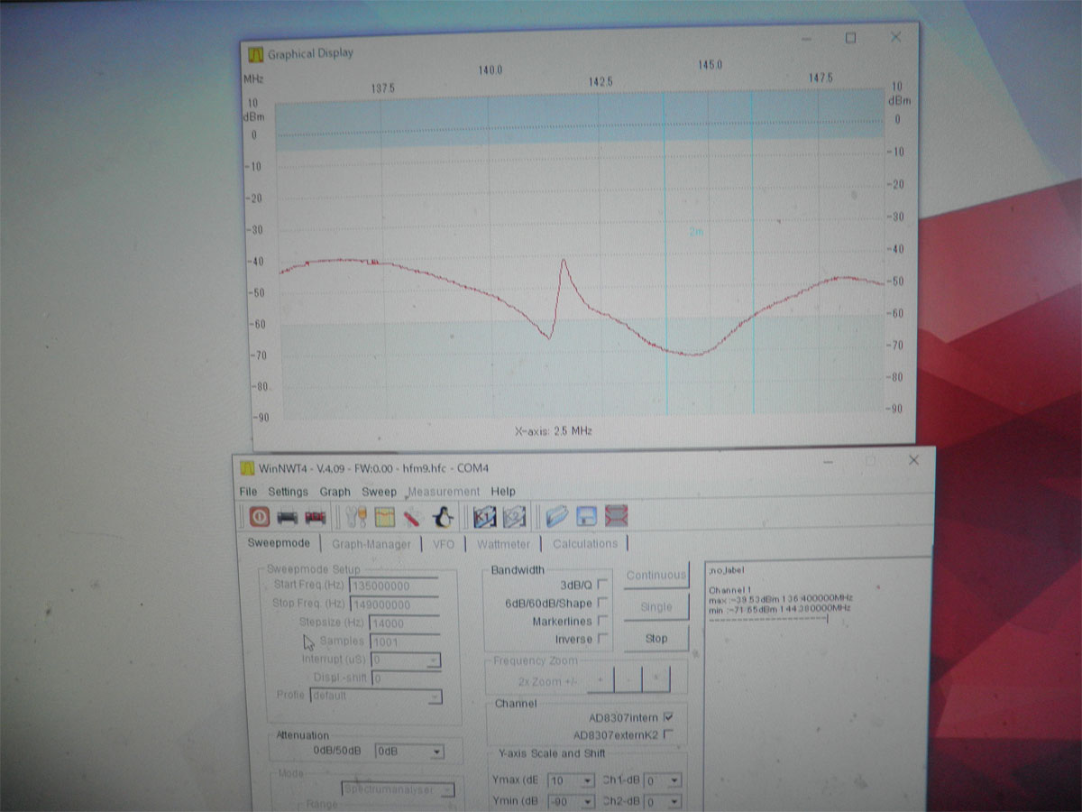 144MHz送受BPFの特性周波数も表示に工夫しないと通過帯域があやふやに成ってしまう。-3dB~+3dBが分かると良いのだが、何とか工夫有るのみ。