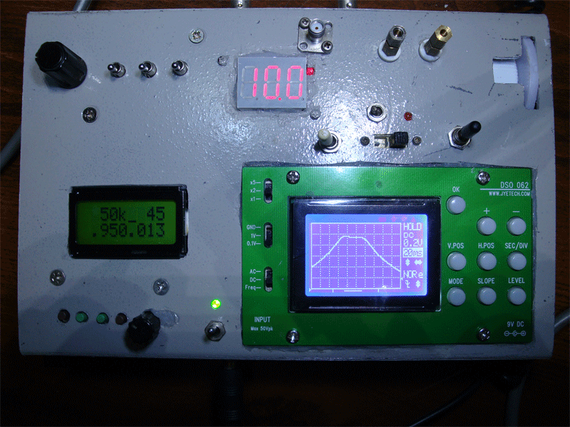 2)コイルのQメータに使う。上側面のGenはつないでコイルの端子に未知のLを繋ぎCを可変ピークを探す、ATTのVRで