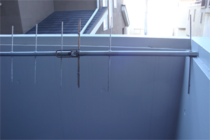 網線からも流れるが少しでも変位電流が流れる様に4本のビニール線を垂らす。マストが金属なら無。(