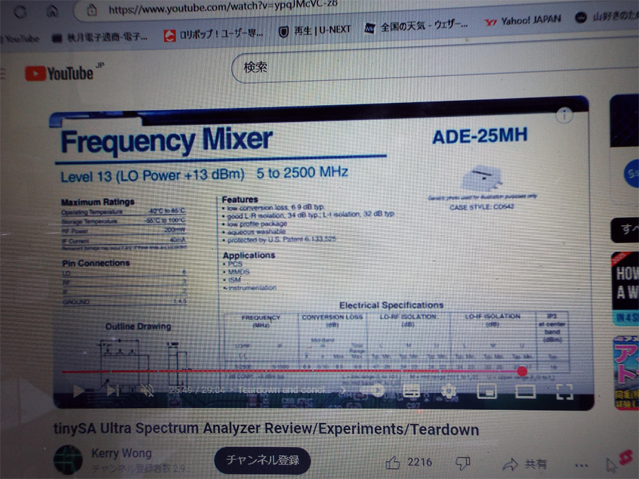 このスペアナは分解能が200Hzと価格にしては大変な能力、ただしスキャンにとても時間かかるが