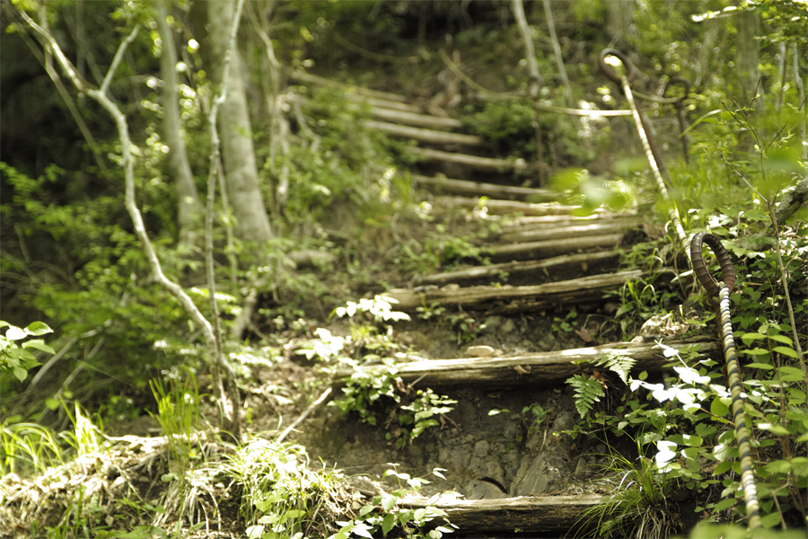かわごいし山、どんないわれやら。ここから痩せ尾根、クサリ場梯子となかなかの登山道