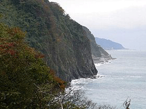 道に出来る様な場所が無かった。日本海に面した断崖、400mの断崖絶壁、波間を見計らって狭い