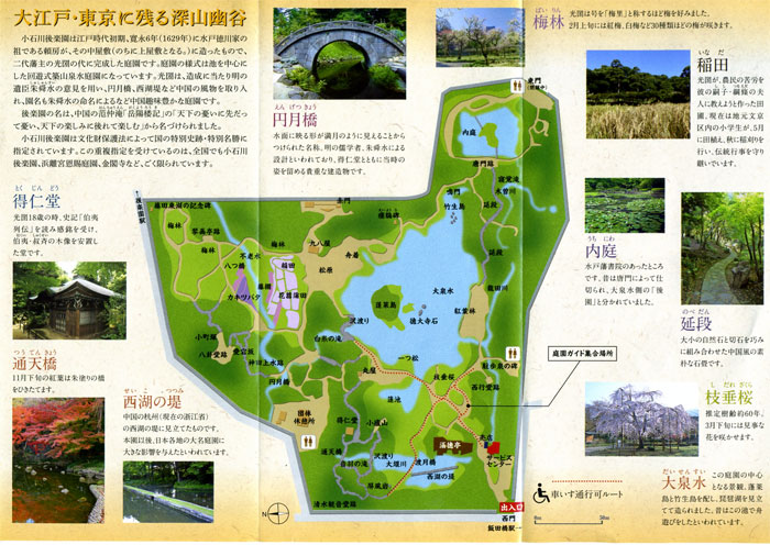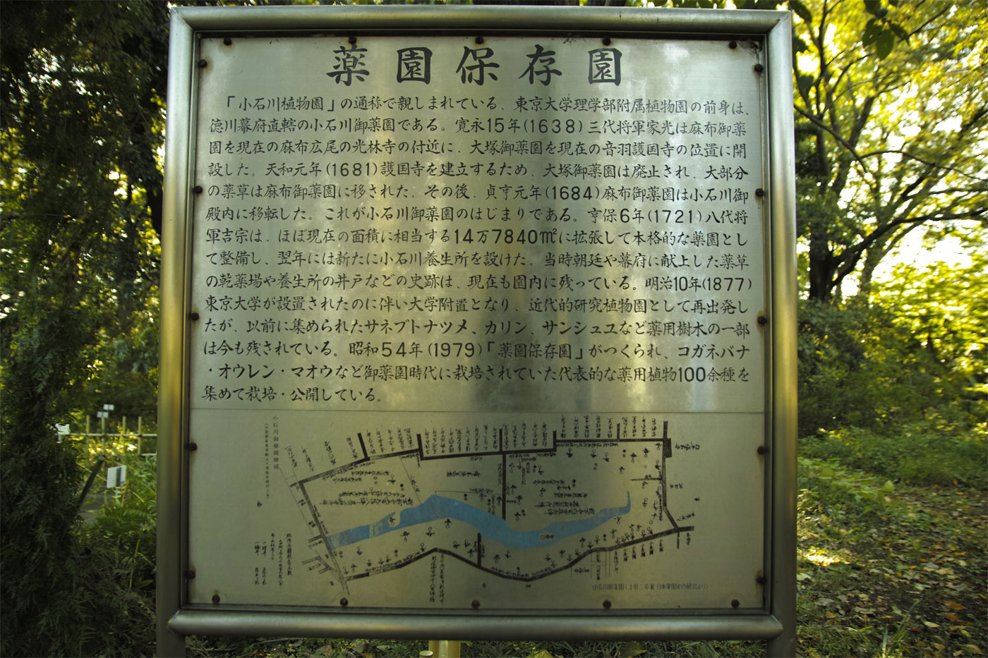 江戸時代小石川に養生所で使われた薬草を栽培していた薬草園を小さくして現代に伝えている
