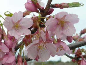 桜の早咲きの花。公園内にわずか咲き出している。1週間後ならかなりおおくの桜の花が見れそうだ。
