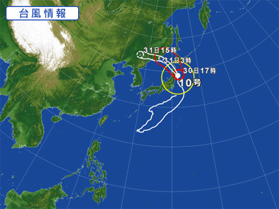 何とか9号台風は東北地方に向かい、雨被害、10号台風は迷走して温帯低気圧